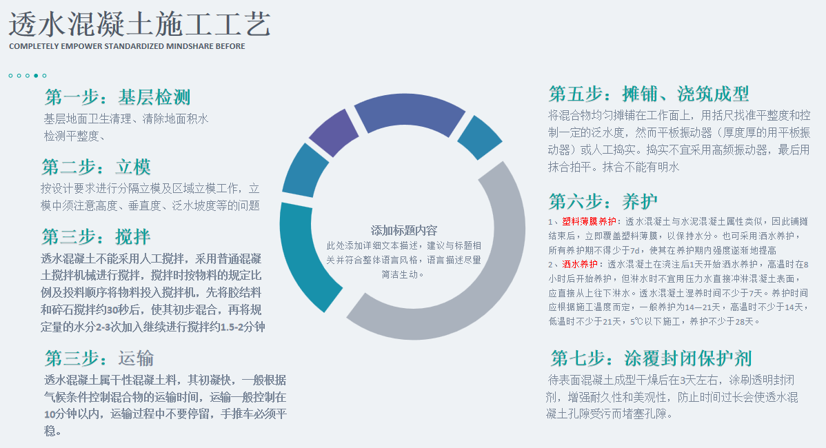 3、良好的裝飾效果。透水地坪擁有色彩優(yōu)化配比方案,能夠配合設(shè)計師獨特創(chuàng)意,實現(xiàn)不同環(huán)境和個性所要